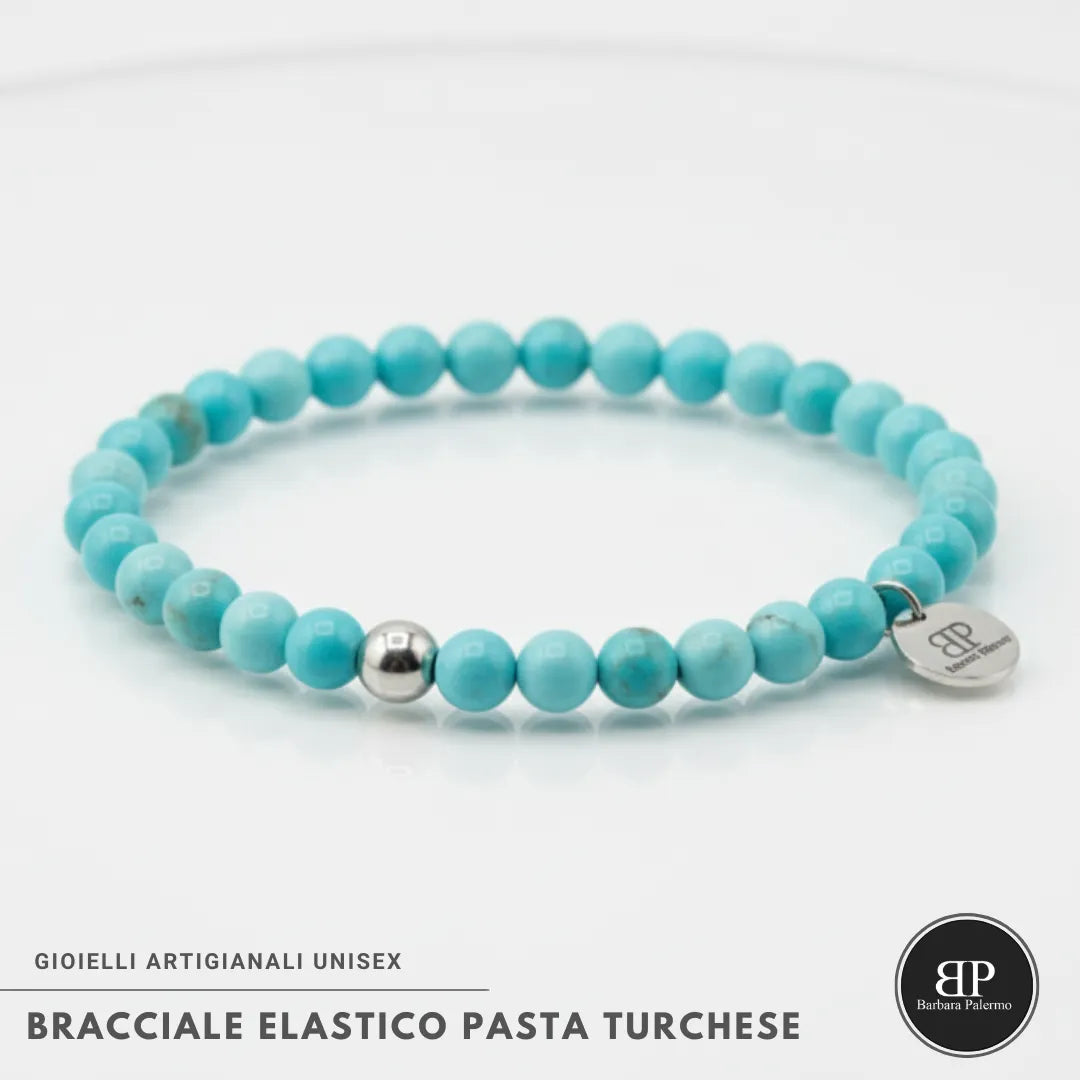 - MADE IN ITALY Stones il bracciale turchese elastico realizzato Pasta turchese, Unisex -diametro pietre 6mm